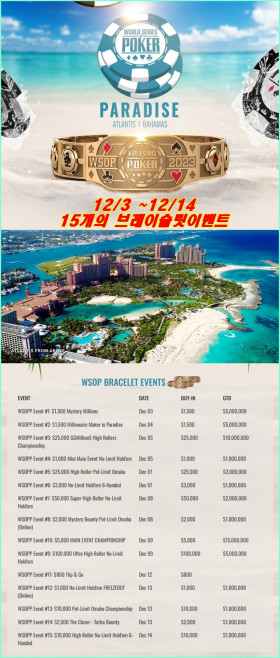 12월3일~14일 wsop 파라다이스 대회일정 안내