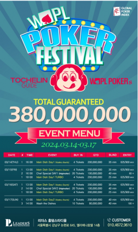 3/14~~3.17 토슐렝 포커 페스티벌 대회일정 안내