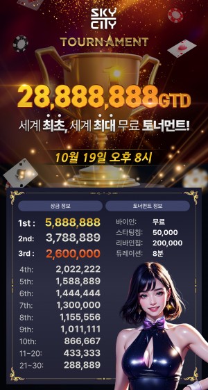 세계 최초,최대 규모 홀덤 무료 토너먼트 오늘부터 시작! 총상금 10억원!!!